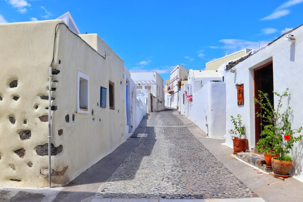 Step away from the busy paths of Santorini and uncover the quiet elegance of its hidden villages. Begin in Mesa Gonia, a village once known as the island’s wine capital. Continue to Exo Gonia, perched on a hillside with sweeping views. Finally, explore Vothonas, a village unlike any other, carved into the soft volcanic rock.